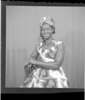 292. EAP449/2/9/292 Reference (shelfmark): EAP449/2/9/292 Title: A woman wearing a dress with a necklace sitting in profile in the studio. Collection Area: Endangered Archives Programme Languages: Not applicable Date Range: 2nd half od the 20th century Extent: 1 TIFF image