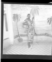 300. EAP449/2/9/300 Reference (shelfmark): EAP449/2/9/300 Title: A woman wearing a pagne standing in profile in the studio. Collection Area: Endangered Archives Programme Languages: Not applicable Date Range: 2nd half od the 20th century Extent: 1 TIFF image