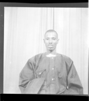 305. EAP449/2/9/305 Reference (shelfmark): EAP449/2/9/305 Title: A man wearing a boubou sitting face-forward in the studio. Collection Area: Endangered Archives Programme Languages: Not applicable Date Range: 2nd half od the 20th century Extent: 1 TIFF image