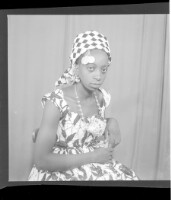 307. EAP449/2/9/307 Reference (shelfmark): EAP449/2/9/307 Title: A woman wearing a dress and necklace sitting in profile in the studio. Collection Area: Endangered Archives Programme Languages: Not applicable Date Range: 2nd half od the 20th century Extent: 1 TIFF image