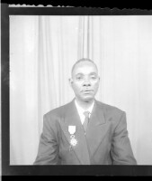 309. EAP449/2/9/309 Reference (shelfmark): EAP449/2/9/309 Title: A man wearing a large boubou standing face-forward and two women wearing dresses and necklaces sitting face-forward in the studio. Collection Area: Endangered Archives Programme Languages: Not applicable Date Range: 2nd half od the 20th century Extent: 1 TIFF image