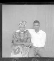 313. EAP449/2/9/313 Reference (shelfmark): EAP449/2/9/313 Title: A man wearing a shirt and a woman wearing a dress sitting face-forward in the studio. Collection Area: Endangered Archives Programme Languages: Not applicable Date Range: 2nd half od the 20th century Extent: 1 TIFF image