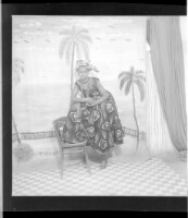 316. EAP449/2/9/316 Reference (shelfmark): EAP449/2/9/316 Title: A woman wearing a dress standing face-forward, foot on a chair, in the studio. Collection Area: Endangered Archives Programme Languages: Not applicable Date Range: 2nd half od the 20th century Extent: 1 TIFF image