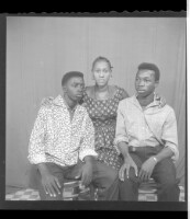 320. EAP449/2/9/320 Reference (shelfmark): EAP449/2/9/320 Title: Two men wearing shirts sitting in profile and a woman wearing a dress sitting face-forward in the middle in the studio. Collection Area: Endangered Archives Programme Languages: Not applicable Date Range: 2nd half od the 20th century Extent: 1 TIFF image