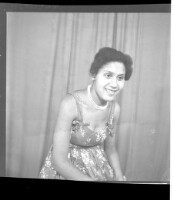 326. EAP449/2/9/326 Reference (shelfmark): EAP449/2/9/326 Title: A woman wearing a dress sitting in profile in the studio. Collection Area: Endangered Archives Programme Languages: Not applicable Date Range: 2nd half od the 20th century Extent: 1 TIFF image