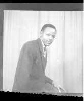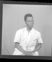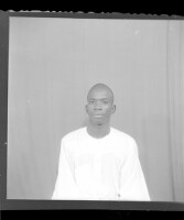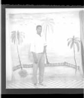 332. EAP449/2/9/332 Reference (shelfmark): EAP449/2/9/332 Title: A man wearing a shirt and pants standing in profile in the studio. Collection Area: Endangered Archives Programme Languages: Not applicable Date Range: 2nd half od the 20th century Extent: 1 TIFF image
