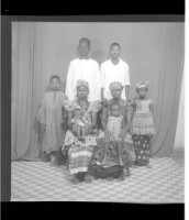 334. EAP449/2/9/334 Reference (shelfmark): EAP449/2/9/334 Title: A group of eight people; two men and two children standing face-forward and two women holding two babies sitting face-forward in the studio. Collection Area: Endangered Archives Programme Languages: Not applicable Date Range: 2nd half od the 20th century Extent: 1 TIFF image