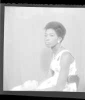 336. EAP449/2/9/336 Reference (shelfmark): EAP449/2/9/336 Title: A woman wearing a dress sitting in profile in the studio. Collection Area: Endangered Archives Programme Languages: Not applicable Date Range: 2nd half od the 20th century Extent: 1 TIFF image