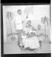 339. EAP449/2/9/339 Reference (shelfmark): EAP449/2/9/339 Title: A man wearing a shirt standing in profile, a woman sitting face-forward with a baby, and two children standing face-forward in the studio. Collection Area: Endangered Archives Programme Languages: Not applicable Date Range: 2nd half od the 20th century Extent: 1 TIFF image