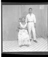 340. EAP449/2/9/340 Reference (shelfmark): EAP449/2/9/340 Title: A man standing face-forward and a woman wearing a dress sitting face-forward in the studio. Collection Area: Endangered Archives Programme Languages: Not applicable Date Range: 2nd half od the 20th century Extent: 1 TIFF image
