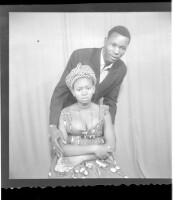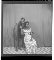 348. EAP449/2/9/348 Reference (shelfmark): EAP449/2/9/348 Title: A man wearing a suit standing face-forward and a woman wearing a dress sitting face-forward in the studio. Collection Area: Endangered Archives Programme Languages: Not applicable Date Range: 2nd half od the 20th century Extent: 1 TIFF image