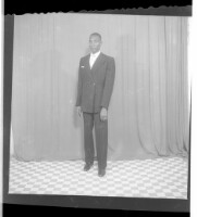 344. EAP449/2/9/344 Reference (shelfmark): EAP449/2/9/344 Title: A man wearing a suit standing in profile in the studio. Collection Area: Endangered Archives Programme Languages: Not applicable Date Range: 2nd half od the 20th century Extent: 1 TIFF image