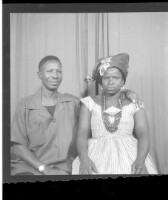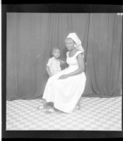 350. EAP449/2/9/350 Reference (shelfmark): EAP449/2/9/350 Title: A woman wearing a dress sitting in profile and a child standing face-forward in the studio. Collection Area: Endangered Archives Programme Languages: Not applicable Date Range: 2nd half od the 20th century Extent: 1 TIFF image