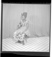 381. EAP449/2/9/381 Reference (shelfmark): EAP449/2/9/381 Title: A woman wearing a pagne and necklace sitting in profile in the studio. Collection Area: Endangered Archives Programme Languages: Not applicable Date Range: 2nd half od the 20th century Extent: 1 TIFF image