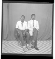 385. EAP449/2/9/385 Reference (shelfmark): EAP449/2/9/385 Title: Two men, one wearing a jacket and tie and the other wearing a shirt sitting face-forward in the studio. Collection Area: Endangered Archives Programme Languages: Not applicable Date Range: 2nd half od the 20th century Extent: 1 TIFF image