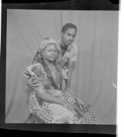 386. EAP449/2/9/386 Reference (shelfmark): EAP449/2/9/386 Title: A man wearing a shirt standing behind a woman sitting in profile in the studio. Collection Area: Endangered Archives Programme Languages: Not applicable Date Range: 2nd half od the 20th century Extent: 1 TIFF image