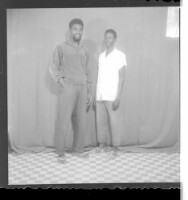 391. EAP449/2/9/391 Reference (shelfmark): EAP449/2/9/391 Title: Two men, one with his hand in his pocket, standing in profile in the studio. Collection Area: Endangered Archives Programme Languages: Not applicable Date Range: 2nd half od the 20th century Extent: 1 TIFF image