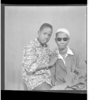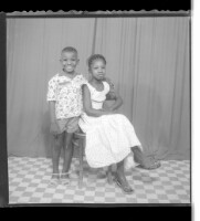 392. EAP449/2/9/392 Reference (shelfmark): EAP449/2/9/392 Title: A girl wearing a dress sitting in profile and a boy standing face-forward in the studio. Collection Area: Endangered Archives Programme Languages: Not applicable Date Range: 2nd half od the 20th century Extent: 1 TIFF image