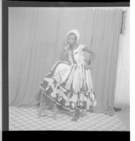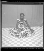 398. EAP449/2/9/398 Reference (shelfmark): EAP449/2/9/398 Title: A woman wearing a large dress sitting face-forward on the ground in the studio. Collection Area: Endangered Archives Programme Languages: Not applicable Date Range: 2nd half od the 20th century Extent: 1 TIFF image