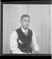 400. EAP449/2/9/400 Reference (shelfmark): EAP449/2/9/400 Title: A man wearing a shirt and vest sitting in profile in the studio. Collection Area: Endangered Archives Programme Languages: Not applicable Date Range: 2nd half od the 20th century Extent: 1 TIFF image