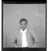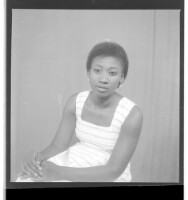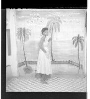 417. EAP449/2/9/417 Reference (shelfmark): EAP449/2/9/417 Title: A woman wearing a dress standing in profile in the studio. Collection Area: Endangered Archives Programme Languages: Not applicable Date Range: 2nd half od the 20th century Extent: 1 TIFF image