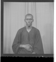 418. EAP449/2/9/418 Reference (shelfmark): EAP449/2/9/418 Title: A man wearing a boubou sitting face-forward in the studio. Collection Area: Endangered Archives Programme Languages: Not applicable Date Range: 2nd half od the 20th century Extent: 1 TIFF image
