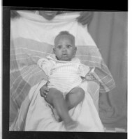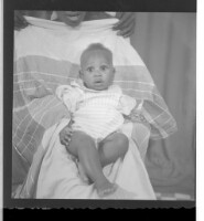 419. EAP449/2/9/419 Reference (shelfmark): EAP449/2/9/419 Title: A baby sitting on a sheet on a woman's lap in a chair in the studio. Collection Area: Endangered Archives Programme Languages: Not applicable Date Range: 2nd half od the 20th century Extent: 1 TIFF image