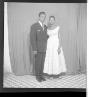 423. EAP449/2/9/423 Reference (shelfmark): EAP449/2/9/423 Title: A man wearing a suit and a woman wearing a dress standing in profile in the studio. Collection Area: Endangered Archives Programme Languages: Not applicable Date Range: 2nd half od the 20th century Extent: 1 TIFF image