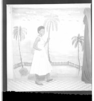 430. EAP449/2/9/430 Reference (shelfmark): EAP449/2/9/430 Title: A woman wearing a dress standing in profile in the studio. Collection Area: Endangered Archives Programme Languages: Not applicable Date Range: 2nd half od the 20th century Extent: 1 TIFF image
