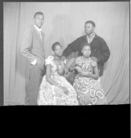 43. EAP449/2/9/43 Reference (shelfmark): EAP449/2/9/43 Title: Four people, two men standing in profile and two women sitting in profile in the studio. Collection Area: Endangered Archives Programme Languages: Not applicable Date Range: 2nd half od the 20th century Extent: 1 TIFF image