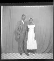 44. EAP449/2/9/44 Reference (shelfmark): EAP449/2/9/44 Title: A man wearing a suit standing in profile and a woman wearing a dress standing face-forward in the studio. Collection Area: Endangered Archives Programme Languages: Not applicable Date Range: 2nd half od the 20th century Extent: 1 TIFF image