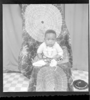 47. EAP449/2/9/47 Reference (shelfmark): EAP449/2/9/47 Title: A baby sitting face-forward in a chair in the studio. Collection Area: Endangered Archives Programme Languages: Not applicable Date Range: 2nd half od the 20th century Extent: 1 TIFF image