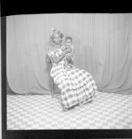 48. EAP449/2/9/48 Reference (shelfmark): EAP449/2/9/48 Title: A woman wearing a dress with a baby sitting in profile in the studio. Collection Area: Endangered Archives Programme Languages: Not applicable Date Range: 2nd half od the 20th century Extent: 1 TIFF image