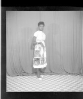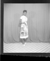 50. EAP449/2/9/50 Reference (shelfmark): EAP449/2/9/50 Title: A woman wearing a skirt with a handbag standing in profile in the studio. Collection Area: Endangered Archives Programme Languages: Not applicable Date Range: 2nd half od the 20th century Extent: 1 TIFF image