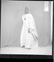 51. EAP449/2/9/51 Reference (shelfmark): EAP449/2/9/51 Title: A man wearing a large boubou standing in profile in the studio. Collection Area: Endangered Archives Programme Languages: Not applicable Date Range: 2nd half od the 20th century Extent: 1 TIFF image