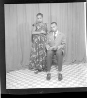54. EAP449/2/9/54 Reference (shelfmark): EAP449/2/9/54 Title: A man wearing a suit sitting in profile and a woman wearing a dress standing face-forward in the studio. Collection Area: Endangered Archives Programme Languages: Not applicable Date Range: 2nd half od the 20th century Extent: 1 TIFF image
