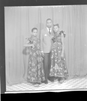 55. EAP449/2/9/55 Reference (shelfmark): EAP449/2/9/55 Title: A man wearing a suit and two women wearing dresses standing face-forward in the studio. Collection Area: Endangered Archives Programme Languages: Not applicable Date Range: 2nd half od the 20th century Extent: 1 TIFF image