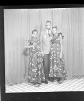 56. EAP449/2/9/56 Reference (shelfmark): EAP449/2/9/56 Title: A man wearing a suit and two women wearing dresses standing face-forward in the studio. Collection Area: Endangered Archives Programme Languages: Not applicable Date Range: 2nd half od the 20th century Extent: 1 TIFF image