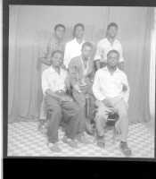 58. EAP449/2/9/58 Reference (shelfmark): EAP449/2/9/58 Title: Six men, three standing face-forward behind and three sitting face-forward in front in the studio. Collection Area: Endangered Archives Programme Languages: Not applicable Date Range: 2nd half od the 20th century Extent: 1 TIFF image