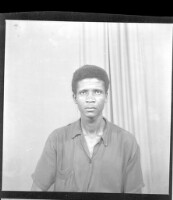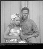 66. EAP449/2/9/66 Reference (shelfmark): EAP449/2/9/66 Title: A woman wearing a pagne standing in profile in the studio. Collection Area: Endangered Archives Programme Languages: Not applicable Date Range: 2nd half od the 20th century Extent: 1 TIFF image