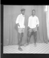 88. EAP449/2/9/88 Reference (shelfmark): EAP449/2/9/88 Title: Two men wearing shirts and shorts standing in profile in the studio. Collection Area: Endangered Archives Programme Languages: Not applicable Date Range: 2nd half od the 20th century Extent: 1 TIFF image
