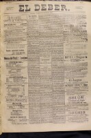 35. EAP726/1/1/18/35 Reference (shelfmark): EAP726/1/1/18/35 Title: El Deber [05 Feb 1907] Collection Area: Endangered Archives Programme Languages: Spanish Date Range: 05 Feb 1907 Extent: 4 Tiff images