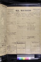 189. EAP726/1/1/38/189 Reference (shelfmark): EAP726/1/1/38/189 Title: El Deber [22 Aug 1927] Collection Area: Endangered Archives Programme Languages: Spanish Date Range: 22 Aug 1927 Extent: 6 Tiff images