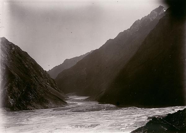 Genre: Landscape Photography Central section of three-part panoramic view, comprising (left to right) prints 449, 445, 450 (second exposure of middle section), 446. The central and right-hand sections are reproduced as Innermost Asia, vol. 2, fig. 430: 'Panoramic view from Shitam Pass to west (...
