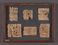 Six small papyrus sheets, written on one side, the back being blank; housed in the same glass frame.