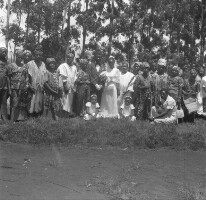 63. EAP054/1/81/28 Reference (shelfmark): EAP054/1/81/28 Title: Recreational photograph [c 1977] Scope & Content: Wedding group in front of trees Format of original: 57mm x 59mm plastic negative Collection Area: Endangered Archives Programme Languages: Not applicable Date Range: c 1977 Extent: 1 TIFF image