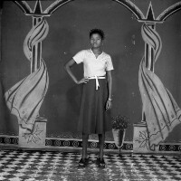 70. EAP054/1/81/70 Reference (shelfmark): EAP054/1/81/70 Title: Recreational photograph [c 1977] Scope & Content: Girl standing, hand on hip Format of original: 59mm x 59mm plastic negative Collection Area: Endangered Archives Programme Languages: Not applicable Date Range: c 1977 Extent: 1 TIFF image