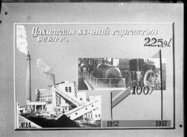 3450. EAP264/1/5/7/38 Reference (shelfmark): EAP264/1/5/7/38 Title: A poster advertising the growth of construction materials production [Mid 1950s] Collection Area: Endangered Archives Programme Languages: Not applicable Date Range: Mid 1950s Extent: 1 TIFF image