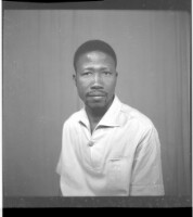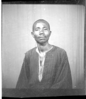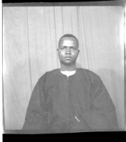 - A man sitting facing forward in the studio wearing a black t-shirt and a black boubou.