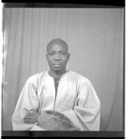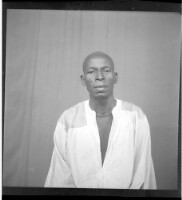 - A man sitting facing forward in the studio wearing a white boubou.